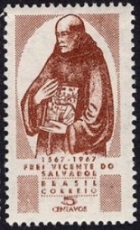 5c., brun-rouge Y&T N°825 Scott N°BR 1139 Emis en 1967 400ème anniversaire de la naissance de Vicente do Salvador Filigrane "CORREIO ☆ BRASIL" Dentelé 11 |
