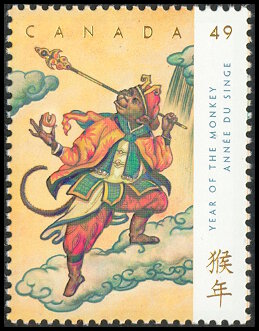 49c., polychrome Y&T N°2048 WNS N°CA001.04 Emis en 2004 Année lunaire chinoise du singe Papier gaufré Dentelé 13x12½ |