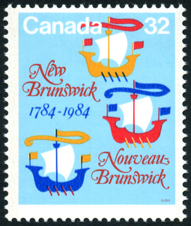 32c., polychrome Y&T N°872 Emis en 1984 Bicentenaire du Nouveau-Brunswick Dentelé 13½ |