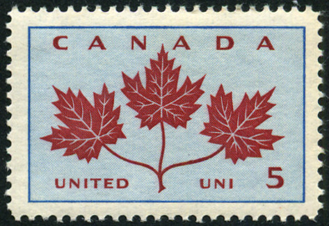 5c., bleu, bleu clair et carmin foncé Y&T N°342 Emis en 1964 Dentelé 12 |