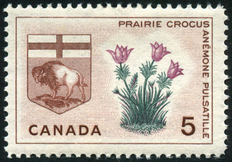5c., violet-brun, lilas et vert-bleu Y&T N°348 Emis en 1965 Armoiries et fleurs Dentelé 12 |