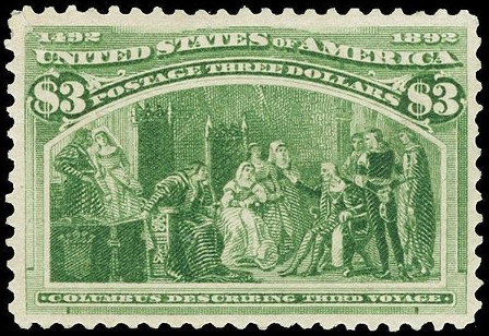 3$., vert-jaune Y&T N°94 Scott N°243 Emis en 1893 Colomb raconte son 3ème voyage, d'après F. Jover |