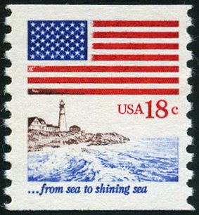 18c., rouge, bleu et brun-violet Y&T N°1313 Scott N°1891 Emis en 1981 Drapeau et phare côtier |