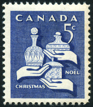 5c., bleu Y&T N°368 Emis en 1965 Noël Dentelé 12 |
