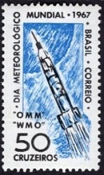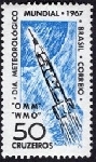 50cr., noir et bleu Y&T N°814 Scott N°BR 1128 Emis en 1967 Journée météorologique mondiale Filigrane "CORREIO ☆ BRASIL" Dentelé 11x11½ |