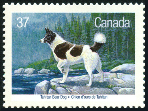 37c., polychrome Y&T N°1058 Emis en 1988 Chiens du Canada Dentelé 12½x12 |