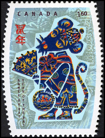1.60$, polychrome Y&T N°2339 WNS N°CA002.08 Emis en 2008 Année lunaire chinoise du rat Papier gaufré or Dentelé 13½ |