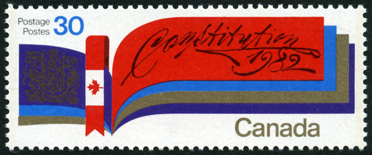 30c., polychrome et or Y&T N°791 Emis en 1982 Rapatriement de la Constitution au Canada Dentelé 12x12½ |