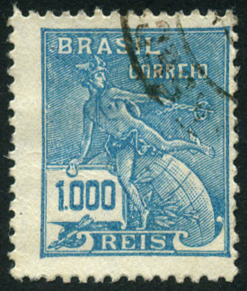 1000r., bleu-vert Y&T N°208 Scott N°BR 317X Herausgegeben von 1929 Filigrane "EUBRASIL" Dentelé 11-13½ |