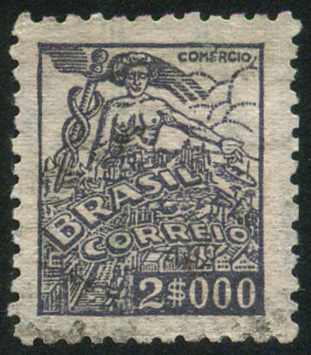 2000r., violet-gris Y&T N°392 Scott N°BR 620yI Herausgegeben von 1942 Filigrane "CORREIO ☆ BRASILI" Dentelé 11 |