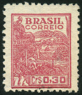 0.30cr., lie-de-vin Y&T N°465A Scott N°BR 702XI Herausgegeben von 1946 Filigrane "CORREIO ☆ BRASILI" Dentelé 11-11½ |