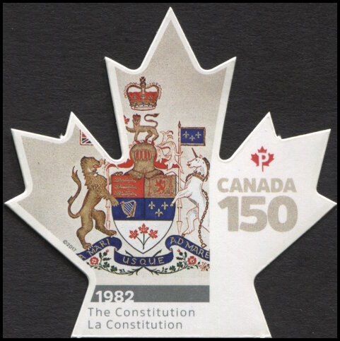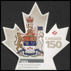 P, polychrome Y&T N°3384 WNS N°CA064.17 Emis en 2017 150e anniversaire de la Confédération canadienne Timbre émis en carnet Timbre autoadhésif Cadre phosphorescent Timbre à validité permanente sans valeur indiquée Dentelé timbre prenant la forme d'une feuille d'érable |