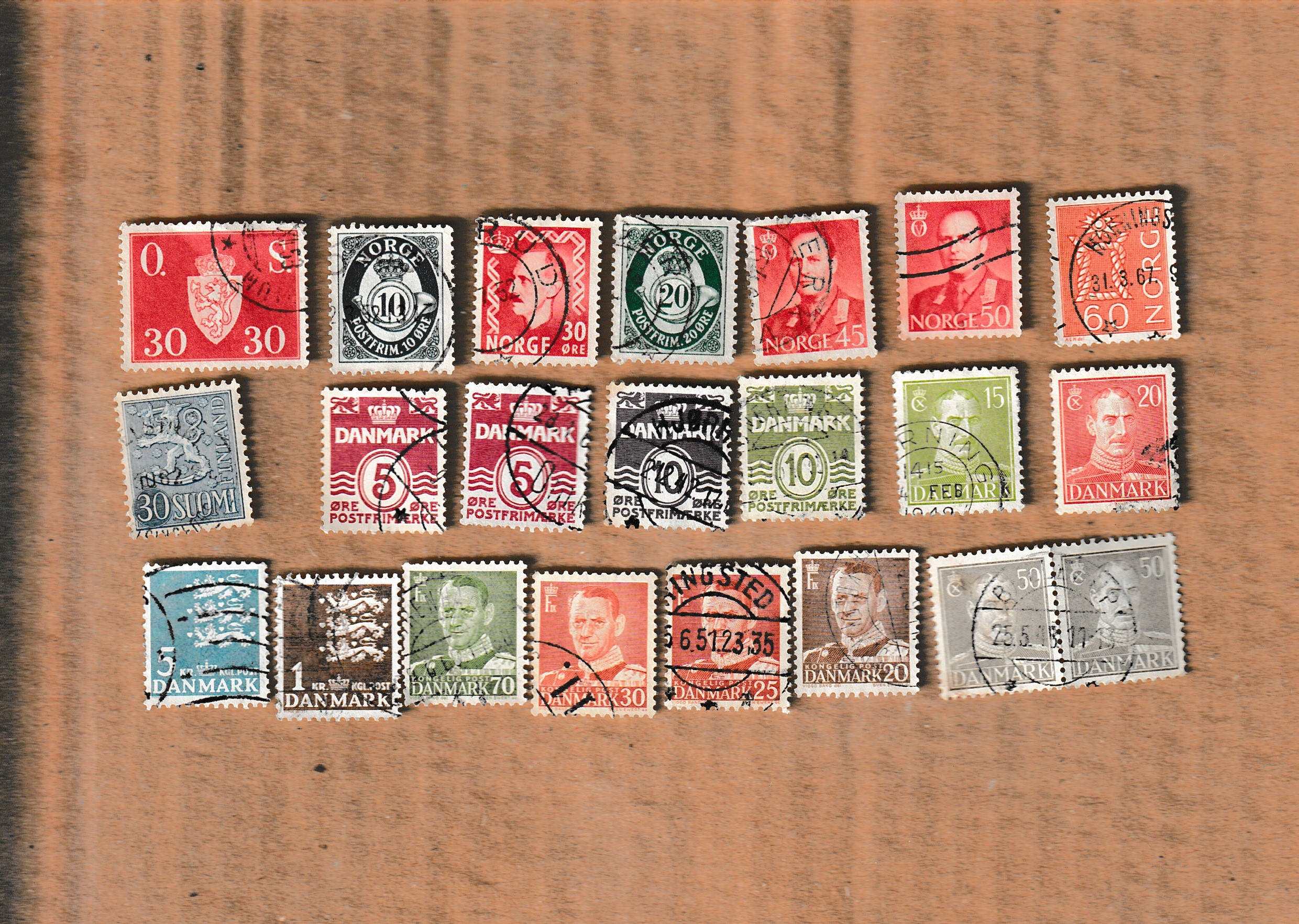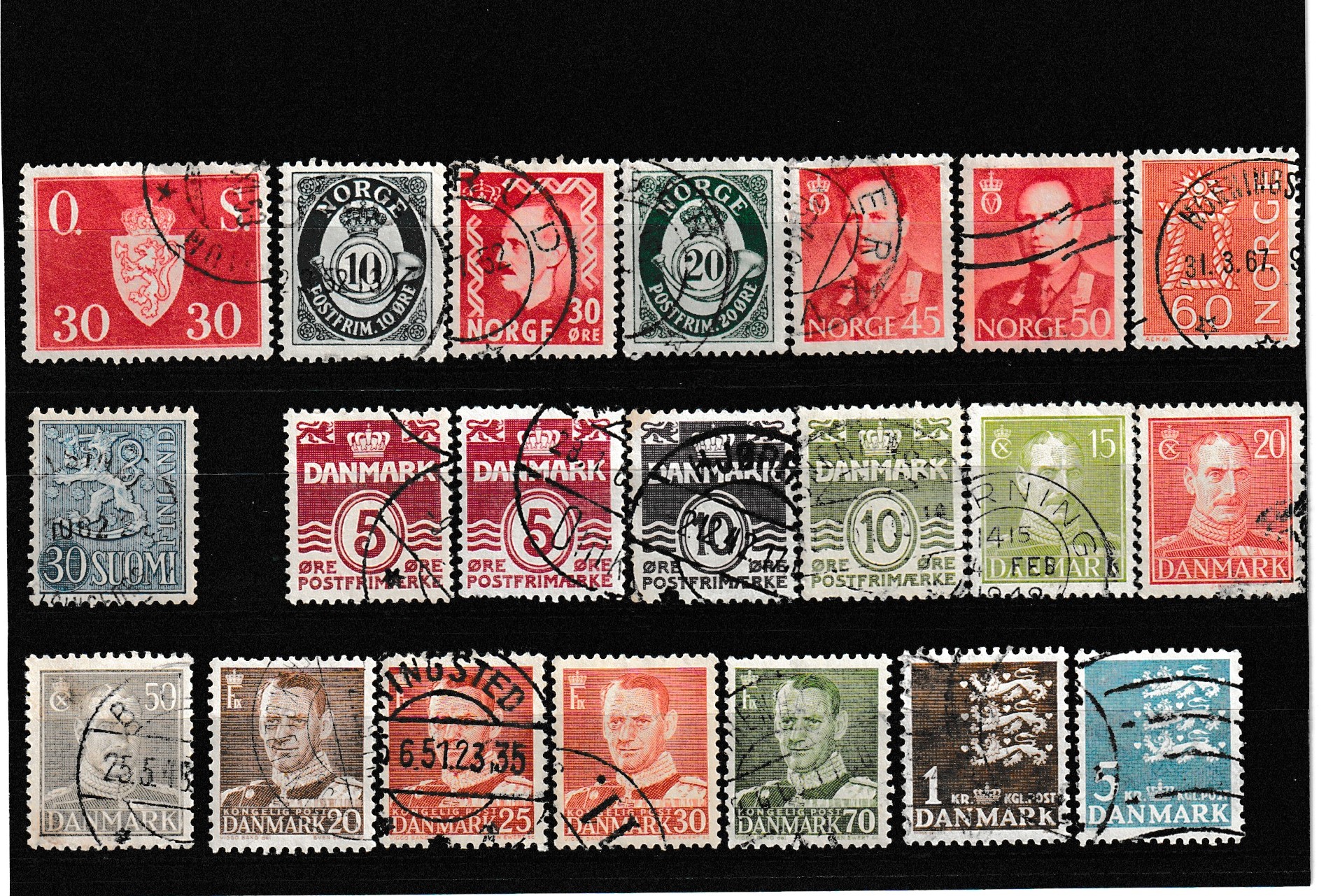 Timbres d'Europe du nord : SUEDE, DANEMARK, FINLANDE.