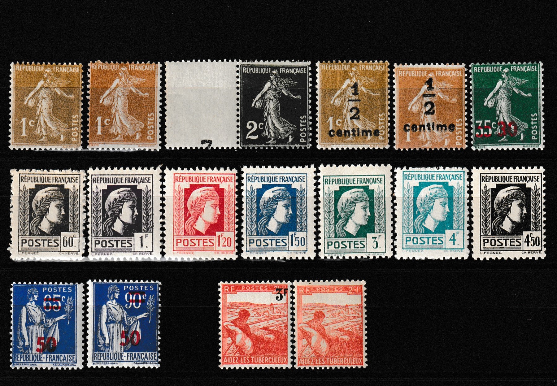 - 2 timbres au profit des tuberculeux n° 736 (1945), avec surcharge n° 750 (1946).