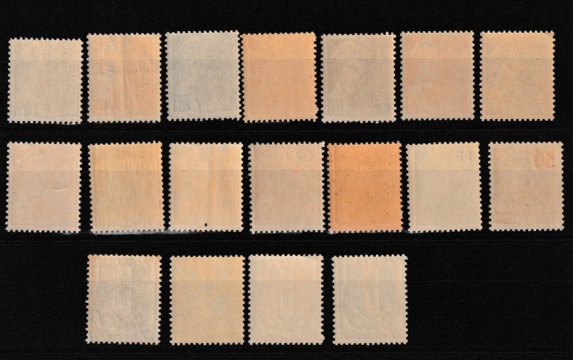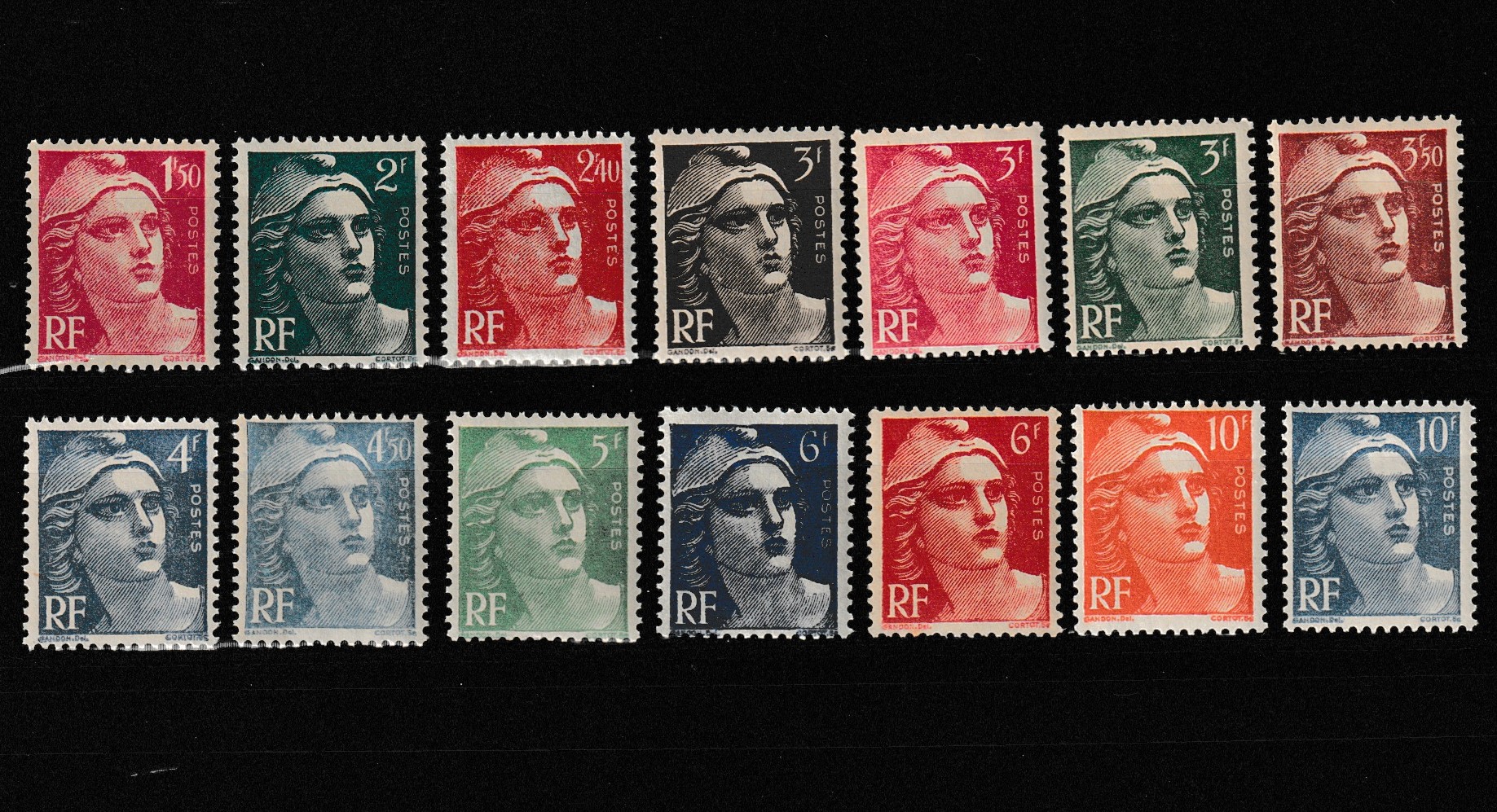 14 timbres type Gandon n° 712, 713, 714, 715, 716, 716A, 716B, 717, 718 718A, 719, 720, 721A, 722, 723 Y&T ((1945-47).