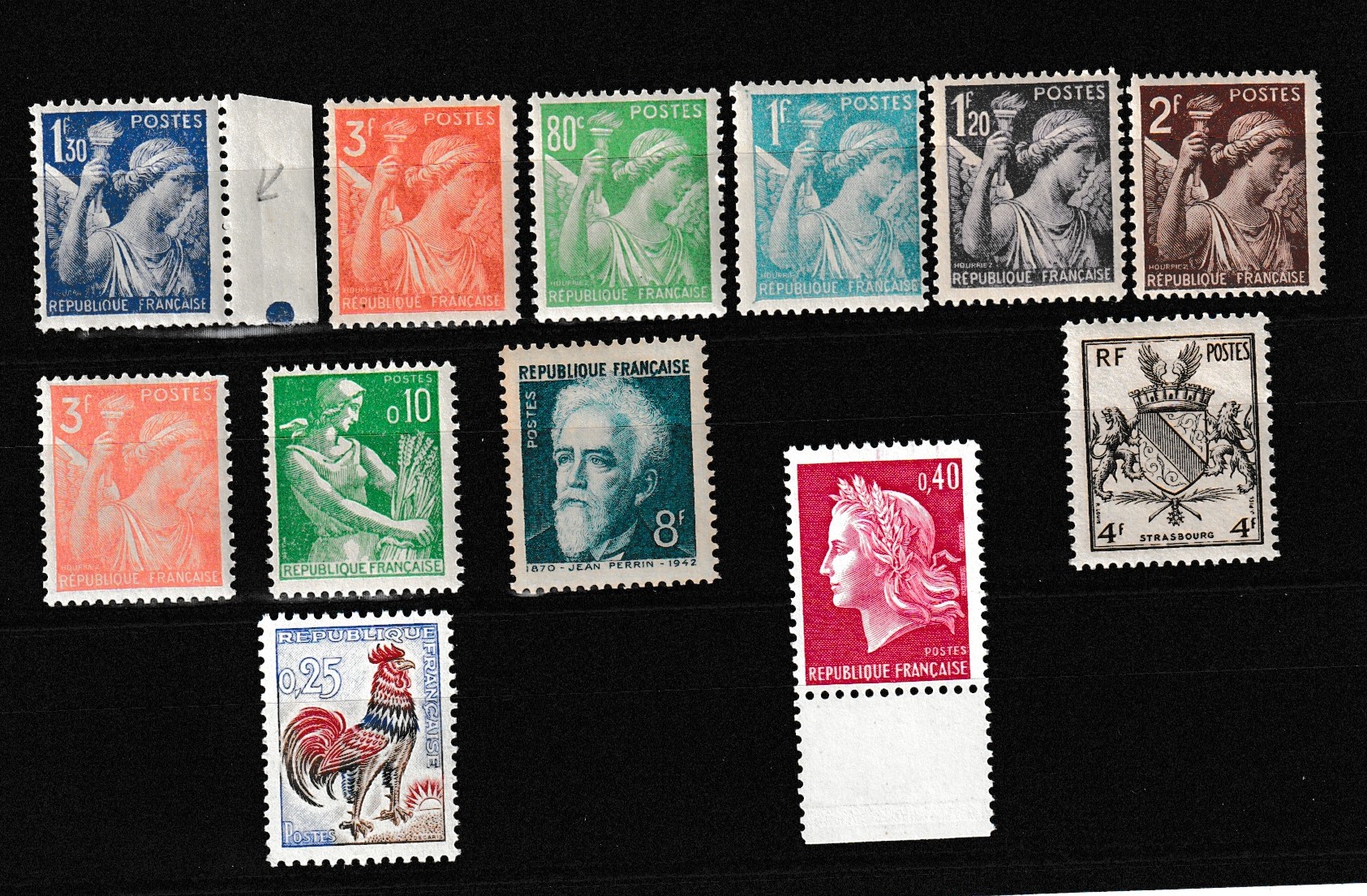 - 6 timbres type Iris n° 434 (1939-41), 649, 650, 651, 653, 655 (1944).