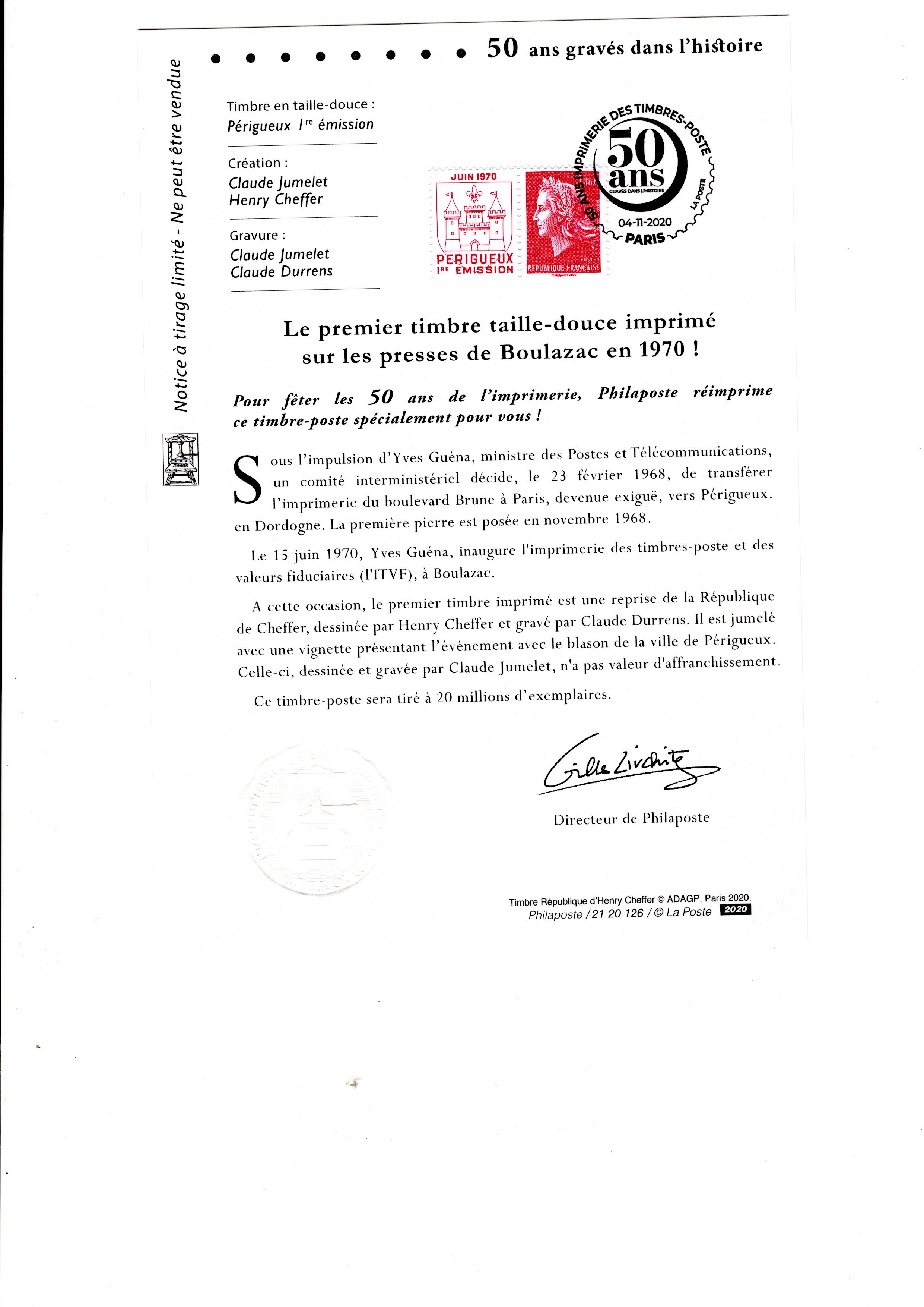 Pour information, je viens de recevoir une notice à tirage limité. Cette notice reprend le visuel du timbre la République de Cheffer avec une faciale de 1.16¤.