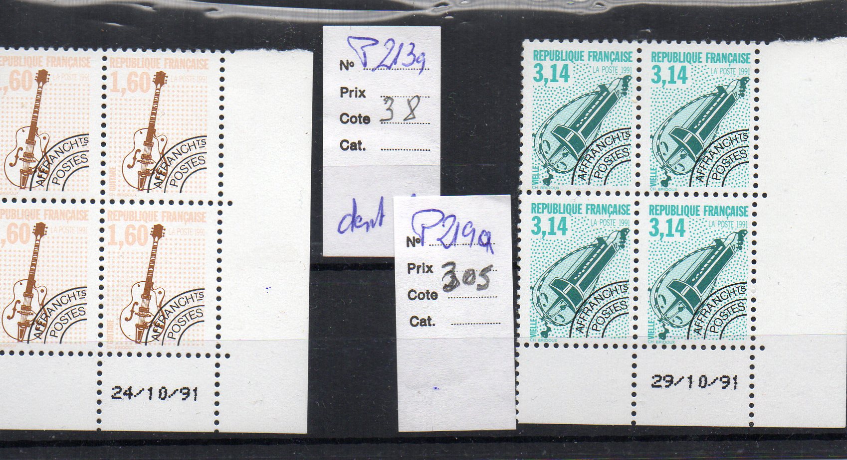 PREO 213a et PREO 219a dentelé 12 contre des timbres de ma mancoliste de cote identique ( NEUF** ou oblitéré)