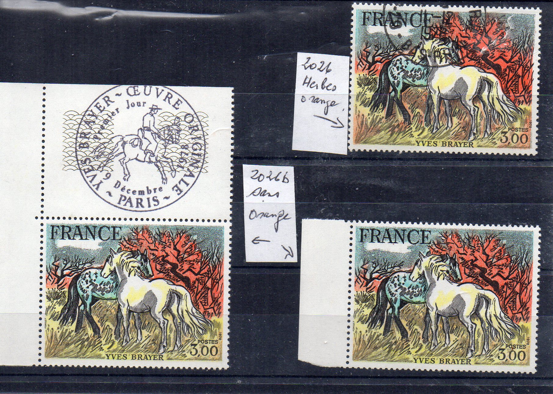 Variété timbre Yves BRAYER N° 2026b herbes sans orange.