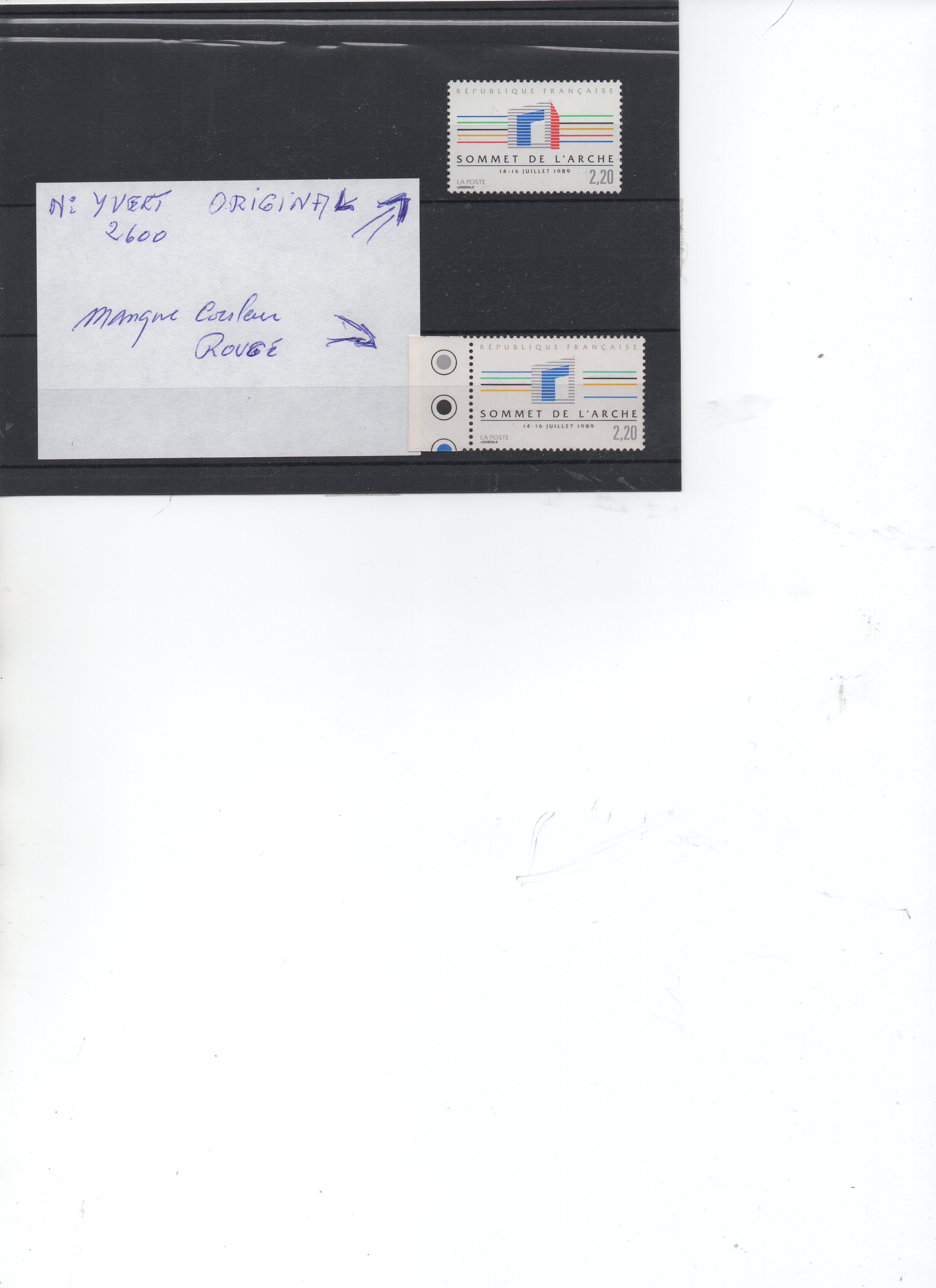 En classant mes collections j'ai trouvé un timbre "Sommet de l'arche" N° 2600 avec la couleur rouge absente.