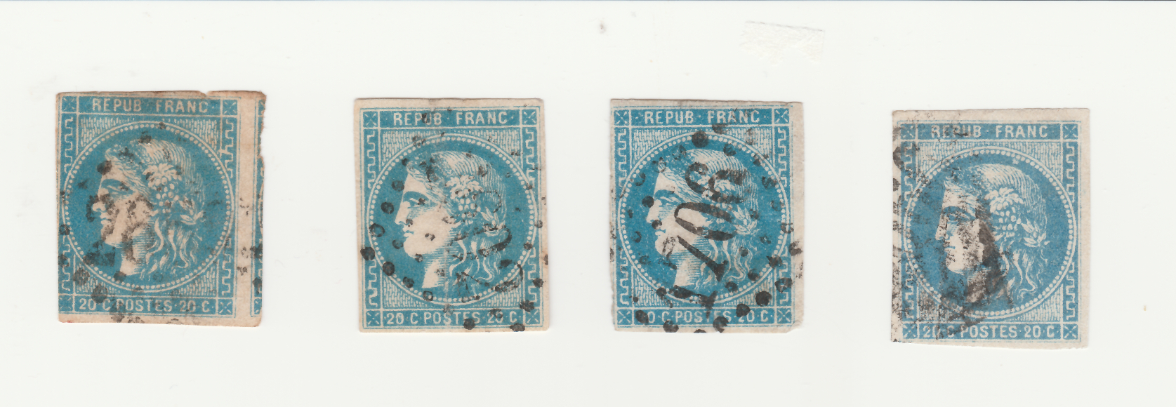 voici 4 cérès de 20c, j'avoue je suis un peu perdue avec les types I II III et les différents reports.