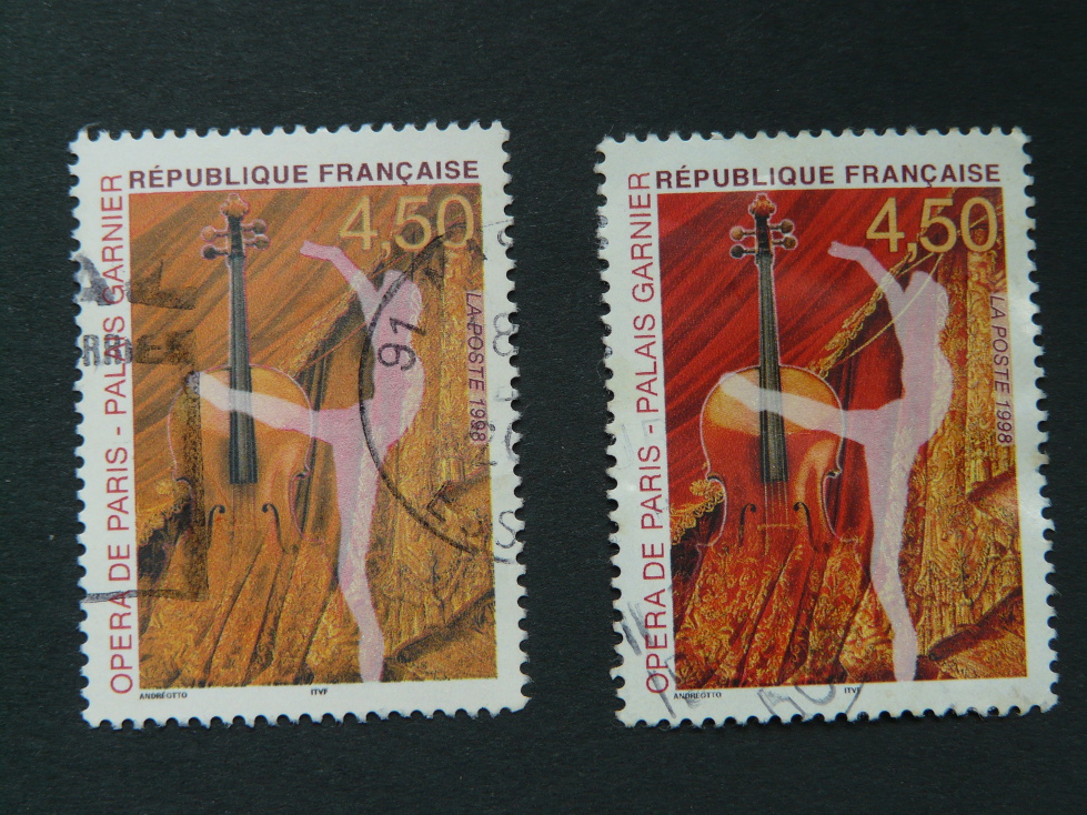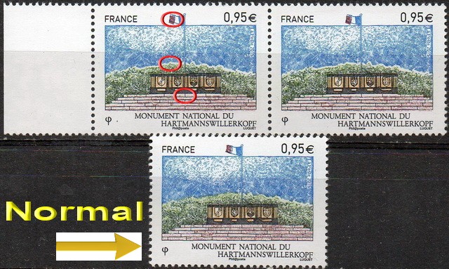 quelqu'un a-t-il déjà rencontré ce type de variété ( timbre de gauche sur le scan) sur le timbre n°3181 ( couleur différente ) , ou est-ce du à une décoloration liée à son décollement