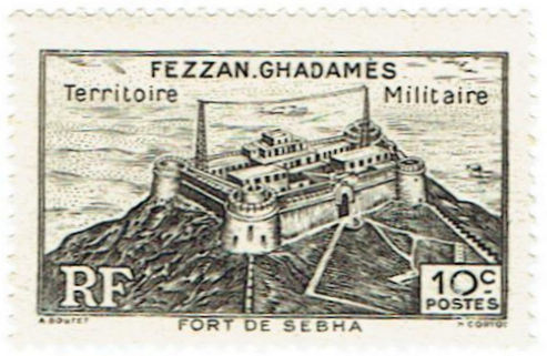 Je cherche sans résultat les caractéristiques de ce timbre Teritoire militaire, Fort de Sebha Fezzan Ghadamé ( voir photos)