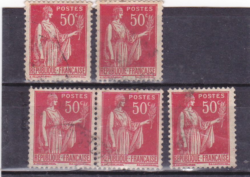 Bonjour , j'aimerais savoir si sur l'image proposée , il y a une différence de type des timbres N°283 50c car j'en ais plusieurs et je ne vois pas les différences . Merci pour vos réponses . Cdl Georges