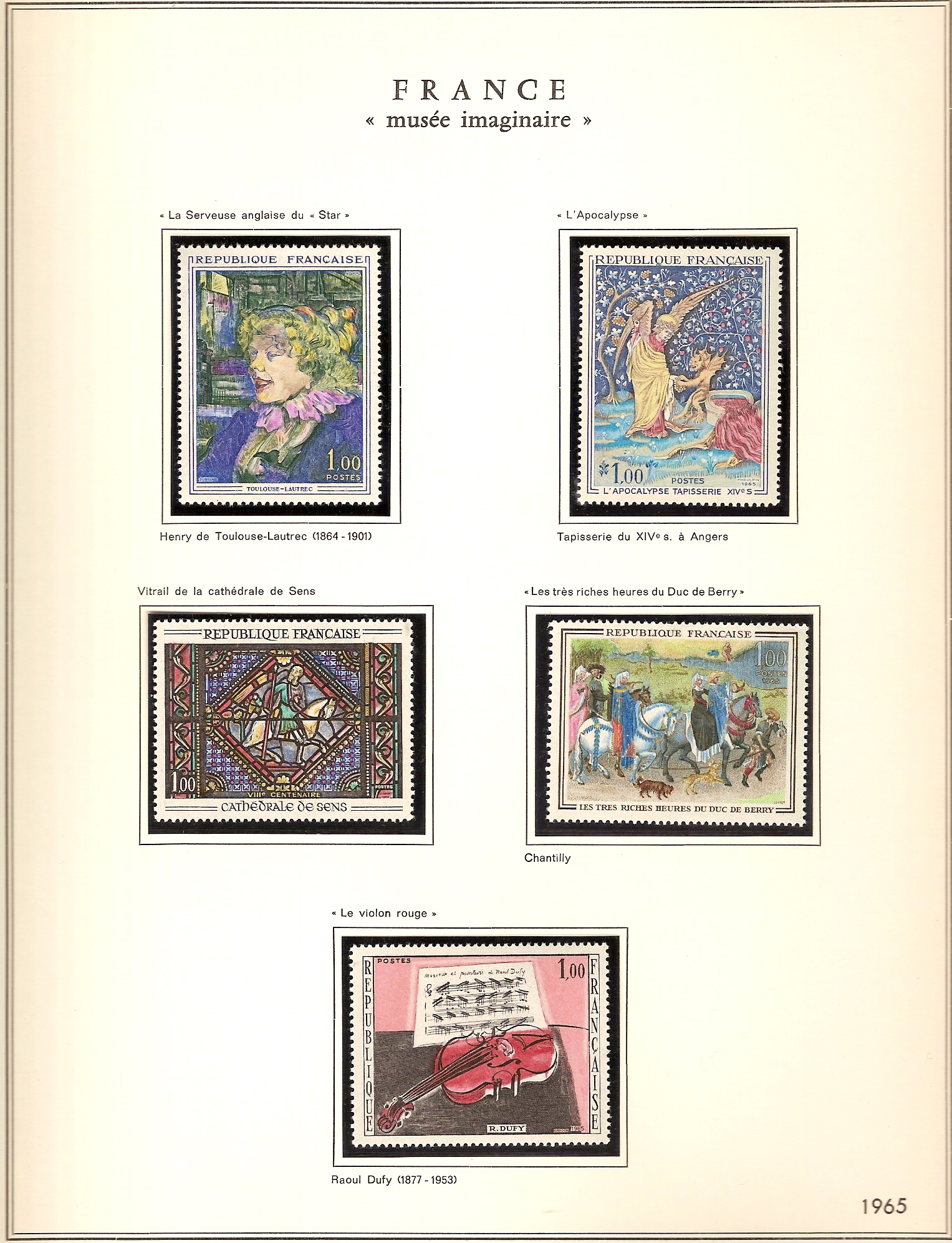 Je propose d'echanger des timbres neufs** du "musée imaginaire" de l'année 1961 à l'année 1987 sur feuilles cartonnées de type azaria. Comme je n'ai pas idée de la valeur, faire une proposition