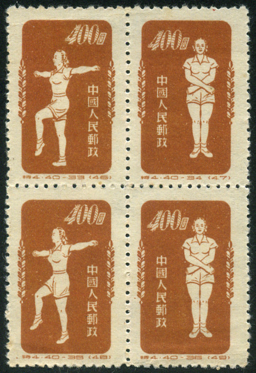 400$., brun-jaune Y&T N°941-941C Emis en 1952 Culture physique par la radio, mouvements décomposés en 4 phases |