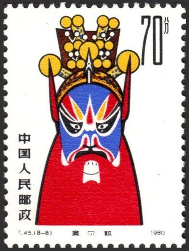 70c., polychrome Y&T N°2311 Emis en 1980 Masques d'Opéras "Beijing" T.45 (8-8) |