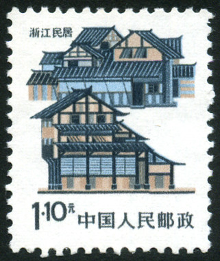 1.10y., bleu et beige Y&T N°2786 Issued on 1986 Constructions provinciales traditionnelles |