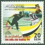 20c., polychrome Y&T N°560 Emis en 1999 20e Jeux de l'Asie du Sud-Est, à Darussalam Dentelé 14½ |