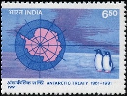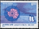 6.50r., polychrome Y&T N°1103 Emis en 1991 Carte du continent et manchots |