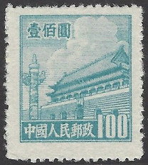 100$., turquoise Y&T N°831(C) Emis en 1950 C = Lithographié; Petits nuages blancs supplémentaires; Dentelé 14 |