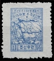 1wn., bleu foncé Y&T N°44 Michel N°KP 40NA Emis en 1951 6ème anniversaire du départ des Japonais Lithographié |