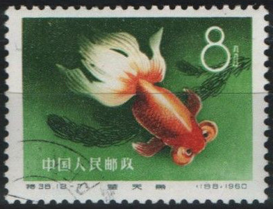 8c., polychrome Y&T N°1298 Emis en 1960 Poissons |