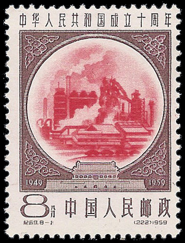 8c., rouge Y&T N°1231 Emis en 1959 10ème anniversaire de la République populaire |