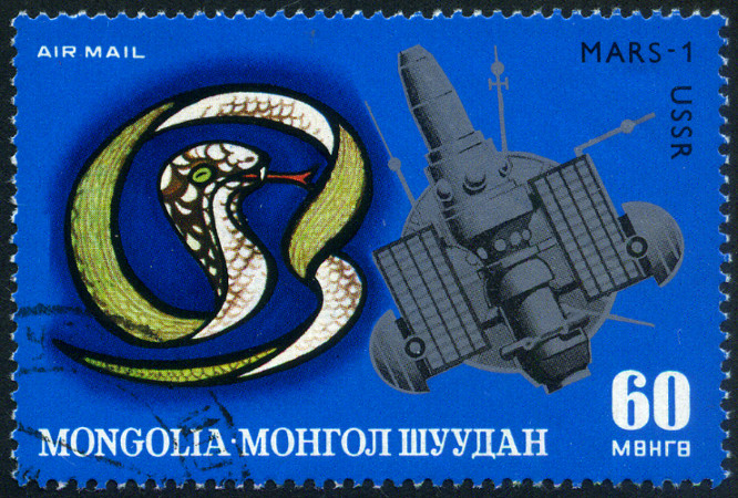 60m., polychrome et bleu Y&T N°PA25 Emis en 1972 Poste aérienne Signes du Zodiaque du calendrier oriental et moyens de recherche spatiale |