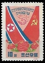 10ch., polychrome et rouge Y&T N°342 Emis en 1961 Traité soviéto-coréen |