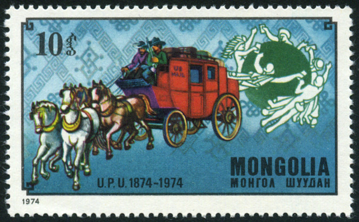 10m., polychrome Y&T N°761 Emis en 1974 Centenaire de l'U.P.U. |