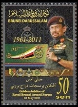 50c., polychrome Y&T N°736 Michel N°768 Emis en 2012 50e anniversaire des Forces armées royales de Brunei Impression offset Dentelé |