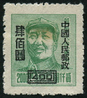 400 sur 2000$., vert Y&T N°876 Emis en 1950 Timbre de Chine Orientale surchargé |