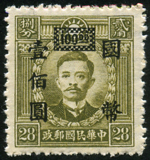 100$. sur 28c., olive Y&T N°483 Herausgegeben von 1945 Timbre surchargé |