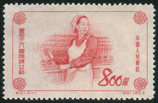 800$., rouge carminé Y&T N°973 Emis en 1953 Journée internationale de la femme |