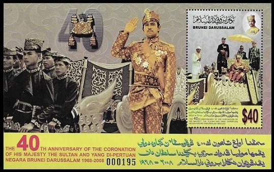 40$., polychrome Y&T N°BF34 Emis en 2008 40e anniversaire du couronnement Timbre sur feuillet Dentelé |