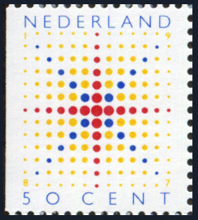 50c., bleu, jaune et rouge Y&T N°1303 Emis en 1987 Etoile à 8 branches stylisée avec texte bleu et fond jaune |