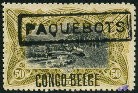 50c., jaune-olive et noir Y&T N°45 Emis en 1908 Timbre surchargé "CONGO BELGE" (surcharge typographique) |
