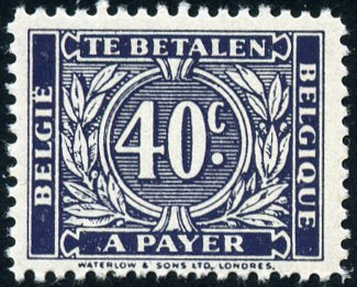 40c., violet-noir Y&T N°TA52A Emis en 1945 Légende BELGIE-BELGIQUE |