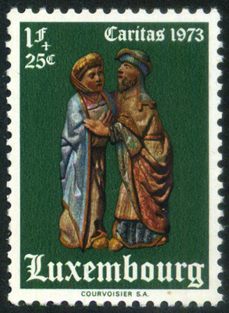 1f.+25c., polychrome Y&T N°821 Emis en 1973 Détails du retable de l'Ermitage de Hachi-ville - Ardennes (1530-1540) |